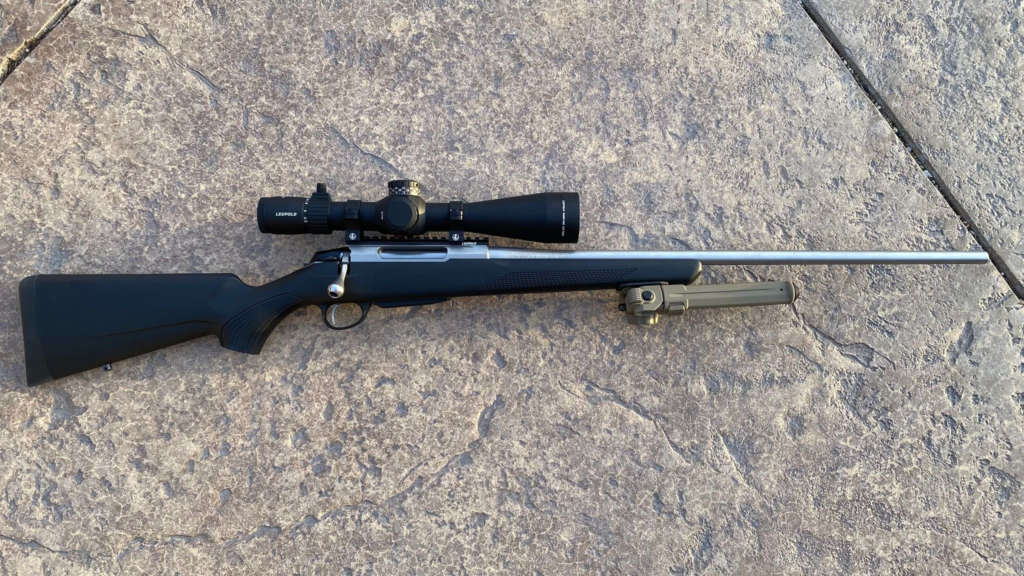 On the rifle I’m writing about, the Leupold Mark4 HD rifle scope is mounted via a Picatinny scope base and medium-height Picatinny compatible rings. This specific scope and mount combination pairs well with the stock’s straight comb. Now, having shot two different Tikka bolt guns that essentially ship with the same stock (this one and the .22 caliber rimfire T1X), I wouldn’t hesitate to recommend medium-height scope rings to make sure the comb and the scope’s ocular lens line up correctly to a shooter’s face.