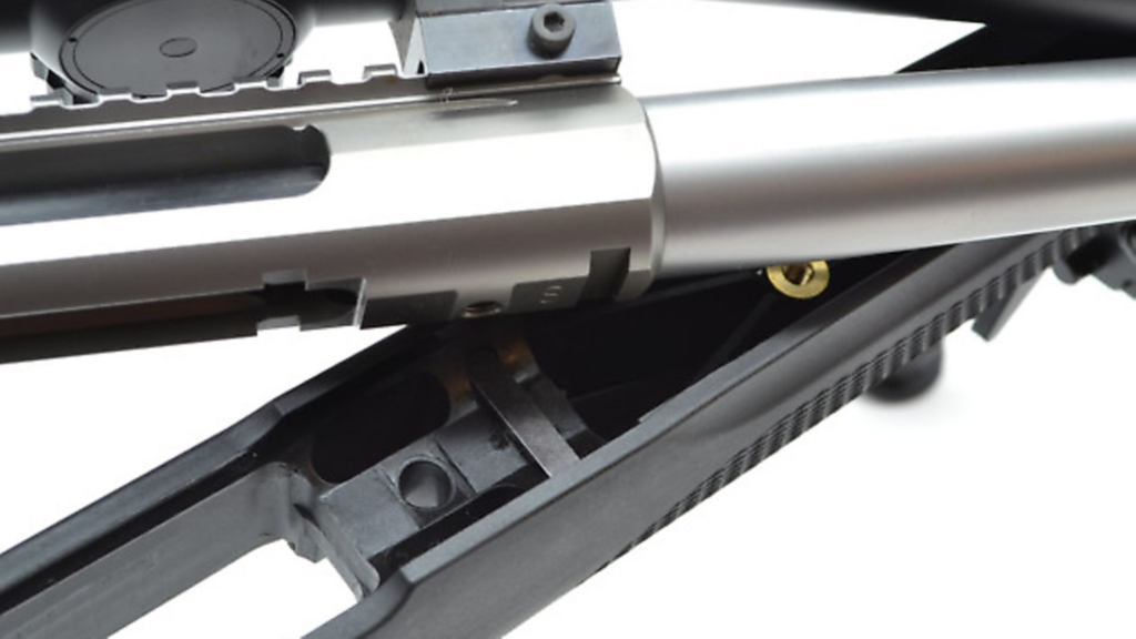 Another noteworthy detail about the Tikka T3X action is the fact that its receiver has a detached recoil lug. Other bolt action receiver designs either integrate the recoil lug directly into the receiver or wear one that fits around the receiver ring like a collar (traditional Remington 700 style). However, the Tikka T3X’s detached recoil lug fits inside a slot in the stock, and makes contact with the bottom of the receiver by mating into a notch when the barreled action fits over the stock.