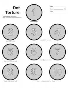 The drills have no time limit, and I like to use this as a slow skill builder that you build speed into. Start slow on your first try, or even dry fire it. Speed will come with proficiency. Dot torture is one of my favorites and a staple of my at-home training regiment.