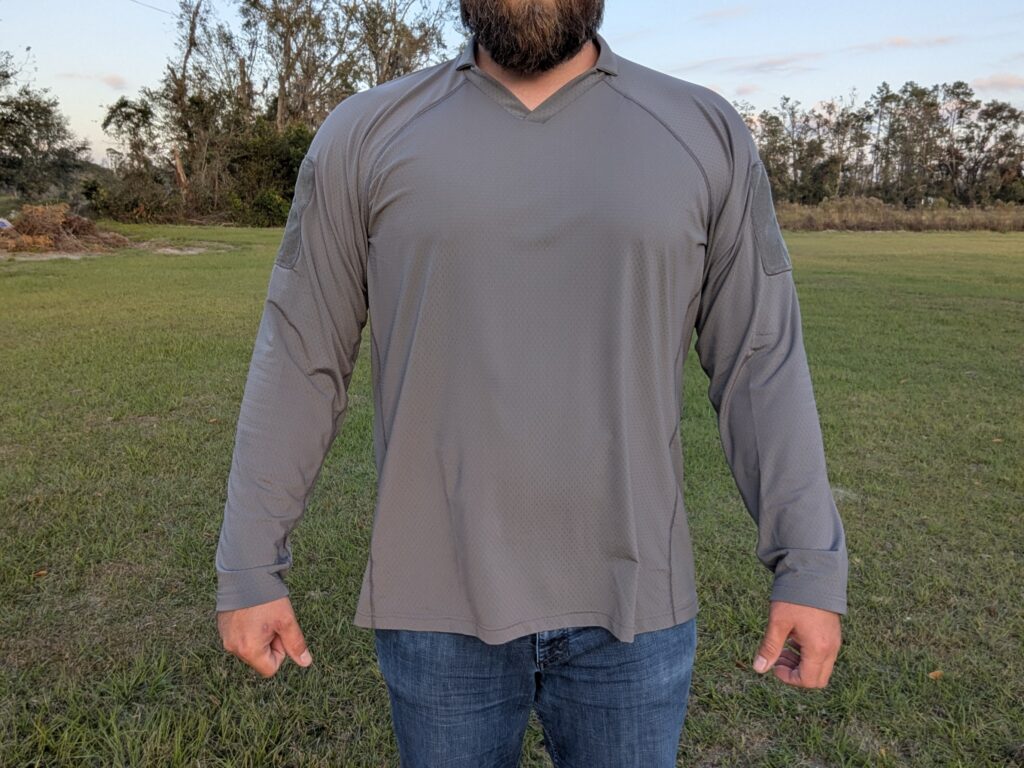 What’s so special about these shirts? They are designed to be sort of a noncamouflaged combat shirt. It’s perfect as a base layer and wears well under armor, chest rigs, and similar gear. What it does best is not suck when it’s hot.