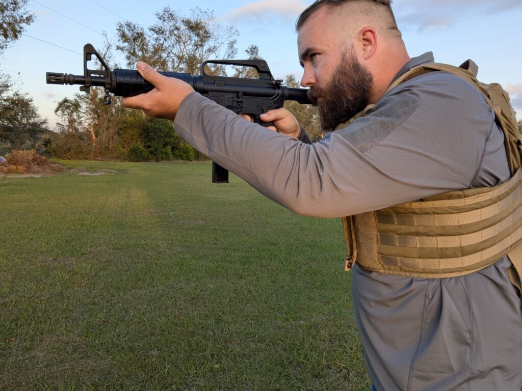 It’s not quite form-fitting or an athletic cut, but it isn’t loose. It fits between the two and creates a fairly good fit, which is necessary if worn with armor. A looser fit might crumple, fold, or bunch under armor or a chest rig. That’s not a problem with the Sigured shirt. Instead of having a single seam under the arm and down the body, we have two that form a panel.