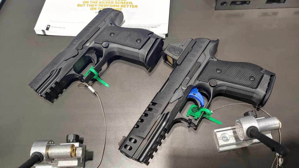 This gun handles like a dream. The recoil and muzzle rise is nearly non-existent. It just jumps a hair between shots. The Walther Range is 15 yards with several different types of targets. One being a hostage target with a small steel popper you can knock from side to side.