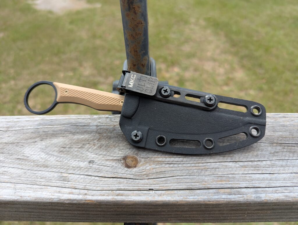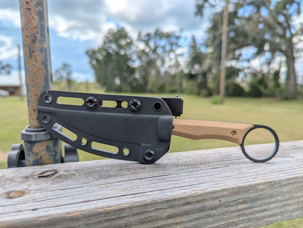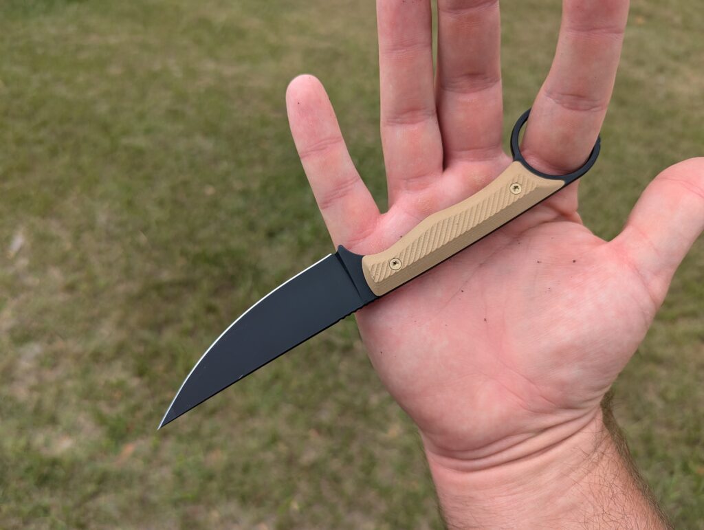 The WarGoat allows you to create distance and change minds, which allows you to get to your gun and use it as necessary. In practice, the thin nature of the WarGoat’s handle means you don’t have to sheath it to grab your gun. Sure, it’s not the best grip, but it’s still small enough to allow you to use your gun with the knife still in a reverse grip.