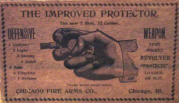 The most famous of these palm pistols is the Protector Palm pistol from 1882. This ultra-small and very unusual-looking firearm is actually a revolver. The round portion in the center holds seven or eight rounds, depending on caliber. Calibers included the .32 Extra short, the .25 ACP, and a .41 caliber, which I assume is a .41 Rimfire. The trigger is in the rear and is fired when the gun is squeezed.
