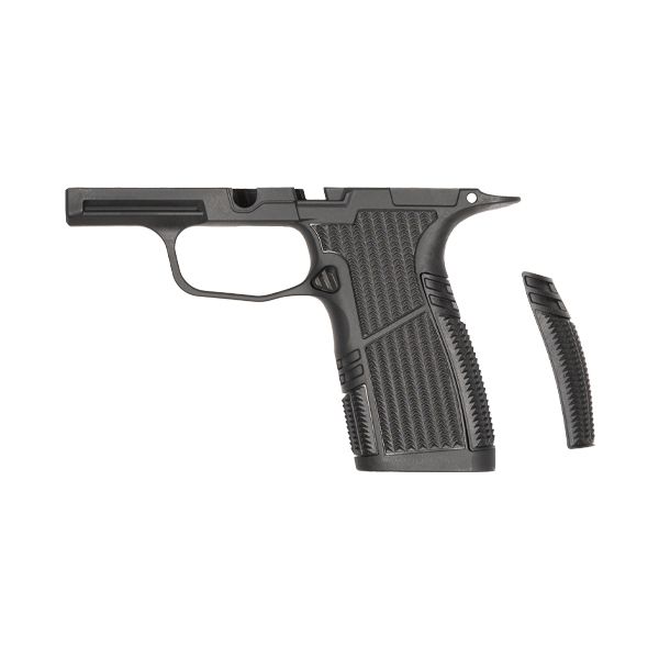 Tyrant CNC’s Snub Nose Grip Module is made from a blend of glass and carbon composites that combine light weight with durability. It features an X-Macro-sized grip that accepts 17-round magazines but is compatible with all P365 Slide & Barrel lengths. That allows you to have a full-service pistol capacity coupled with a compact 3.1-inch barrel and slide.