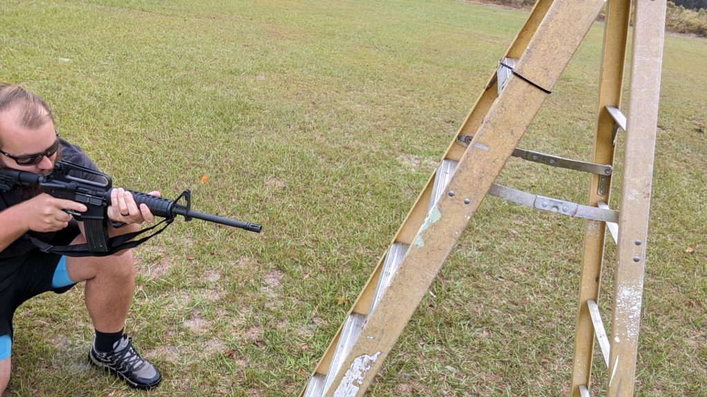 Sentinel Concepts is run by Steve Fisher, one of the premier firearm instructors with a multi-discipline focus. After seeing his post, I grabbed a ladder and headed to the range to give it a try and see how useful a ladder can be for training purposes.
