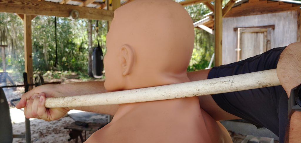 I used a Century Bob to practice the techniques in every way but actually kicking the legs and bringing the aggressor to the ground. The rear, flexible garrote technique is by far the easiest, and with a little practice, I could execute the technique fairly quickly.