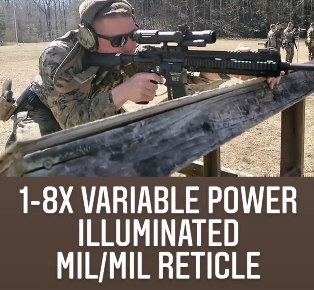 Marines will be able to use the 1-8X variable-powered SCO to identify targets at both close and long distances, providing twice the visual range of the 4X fixed-power Rifle Combat Optic, which is also made by Trijicon. -Military.com