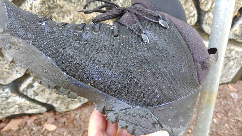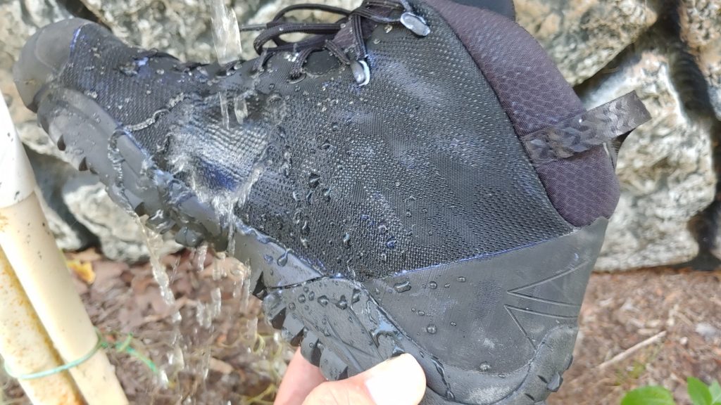 Totally waterproofing any piece of footwear is nearly impossible. It has to essentially be a rubber boot to do that. Shoes and boots have plenty of entry points that simply can’t be 100% waterproof. This wax layer can’t prevent 100% of ingress but should help limit the method water makes entry. You should be able to splash and lightly dunk your footwear in some water without penetration.