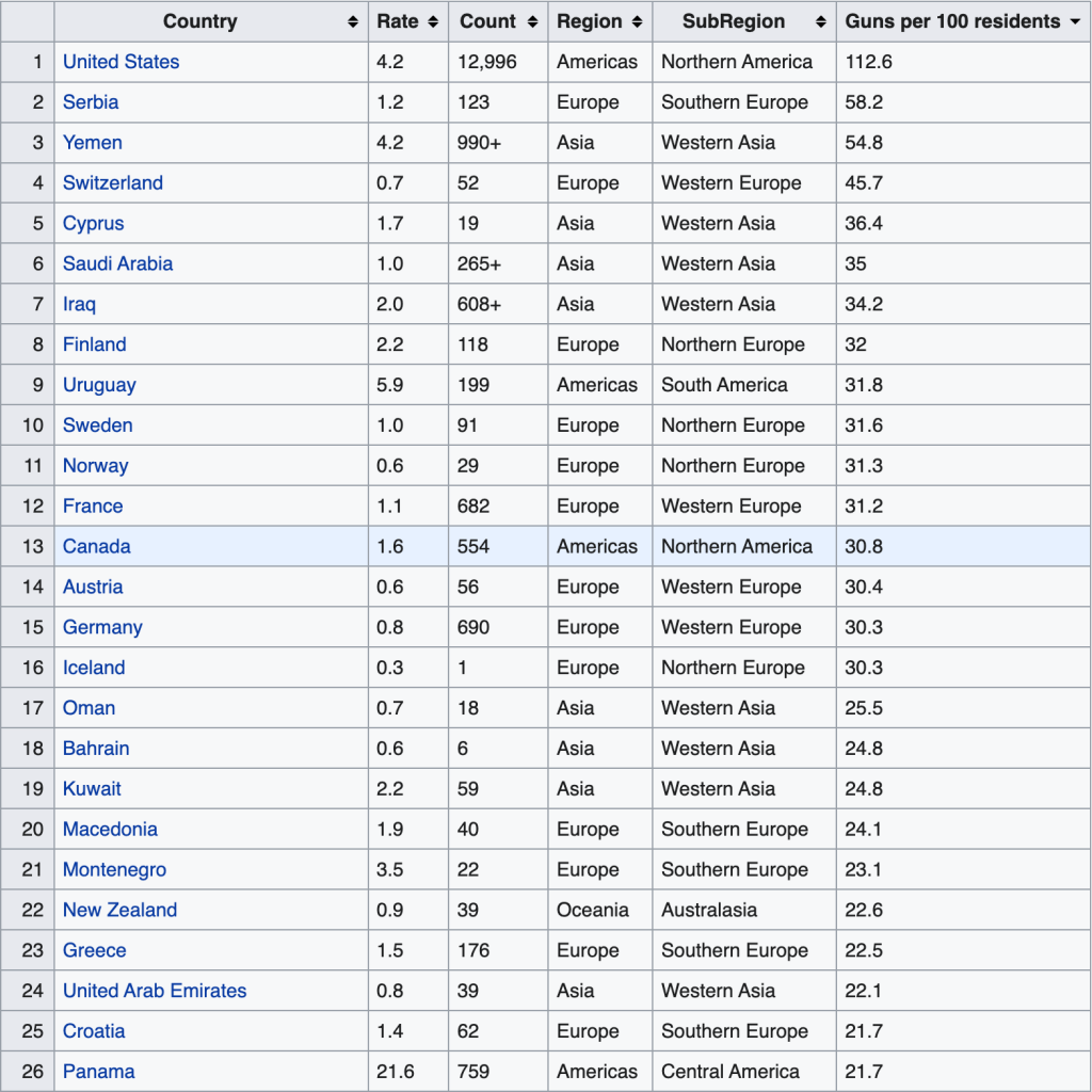 This supposition is so.. so much garbage. That gun ownership rate and existence of the AR-15 are a death specter somehow in the US, so much that we’re implying a second civil war is a possibility, and yet…