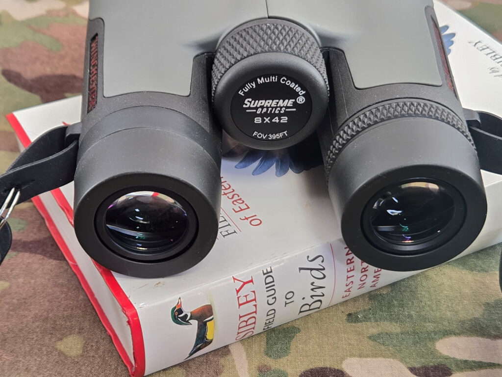 8x works pretty well for what I was doing. It’s enough power to see good detail but low enough power that I still had a good field of view. Especially coupled with the 42mm aperture. I could pick up birds or other animals quickly. The focus knob was easy to use, and I never had an issue getting a clear image. My wife wears glasses, and she was able to use the Supreme binos easily, too, thanks to the twist-up eyecups.