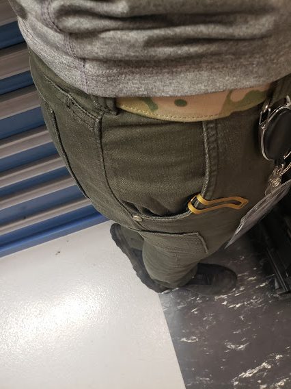 As far as fit and appearance, I finally feel like a woman again wearing these pants. They hug my thighs without giving me muffin top and give me rear coverage but are still low rise. In kneeling and sitting shooting positions I never felt exposed. They also stretched with me both getting in and out of position. I didn’t feel like I needed to pull them up as I bent down and got back up. The leg fit allows me to wear whatever shoe or boot I want due to them not being too tight against my ankle. One thing within the material that I appreciate is the locking zipper. This design ensures that our zipper doesn’t break. The closure button is strong as is the stitching for it so it’s very nice to not have to worry about that ripping. As for a belt, the belt loops are 1.75″ wide. I typically wear the inner belt of the Blue Force Gear CHLK Belt, due to it not having a large buckle or wanting to run the outer war belt and it slides through the loopholes just fine.