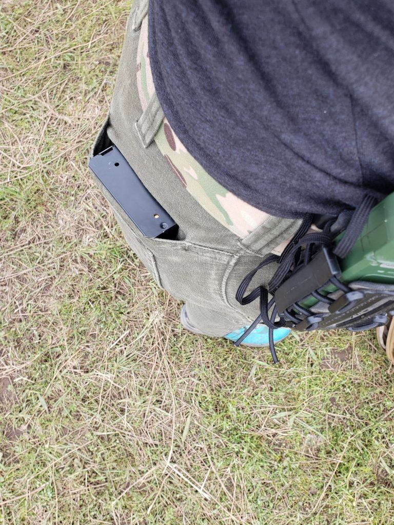 At matches I carry a match book, one magazine on my belt and one in my back pocket, pens and markers, and a kestrel on my belt. Thigh pockets and good rear pockets are a must for precision rifle matches. With the Kesher Ops pant I was able to put both my match book and pens in the thigh pockets for easy access. I didn’t have any worry that the book was going to fall out due to the thigh pocket being deep enough. For the magazines, and maybe my other favorite thing about these pants, the double butt pockets. I am able to put my magazine in the top butt pockets where they stay tight and still have use of the main butt pocket. This pocket is also perfect fit for a phone.