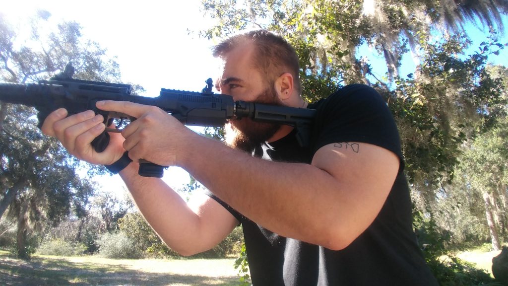 The SBA3 is super comfortable and very easy to use. It straps over the arm with a velcro strap, and the soft rubber design makes it comfortable when wrapped around the forearm. Should it find its way to your shoulder its comfortable with varying recoil levels. In all my shooting and experimenting I’ve found it best used on a AR 15 pistol. The SBA3 is natural for the AR 15 platform, and complete the pistol’s look and feel.