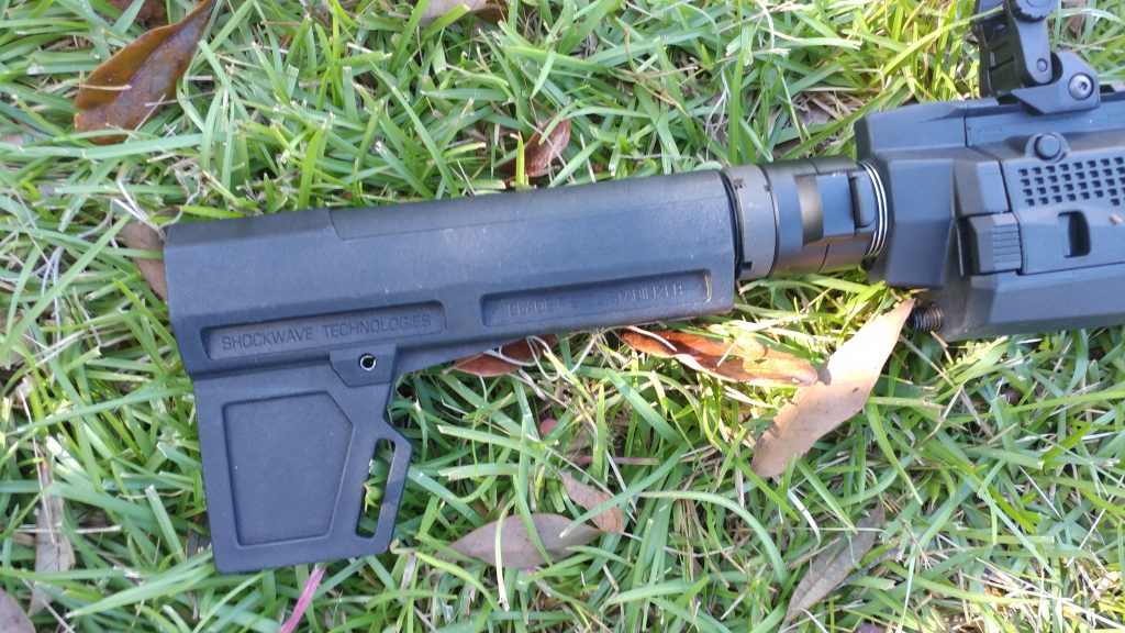 Toss on a side folding brace adapter and the gun itself shrinks to a tiny platform, and due to the Shockwave Blade’s design, it will be thin and tight. This ends up making the gun very small with the brace folded. The Shockwave Blade 2.0 is the most affordable of the adjustable braces, and its best for a lower recoiling platform.