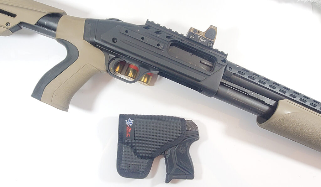 Twenty minutes went by with no movement around the car, so I decided it was time check it out. I had a Ruger LCP II .380 ACP in a DeSanits pocket holster in my jeans pocket and looked over at my Mossberg 590 12-gauge in the corner. I always have the shotgun handy when I am out with the dogs, as we have coyotes and foxes on our property. And you never know. I decided against taking the shotgun because I didn’t want to scare the kids in the car or seem too aggressive.