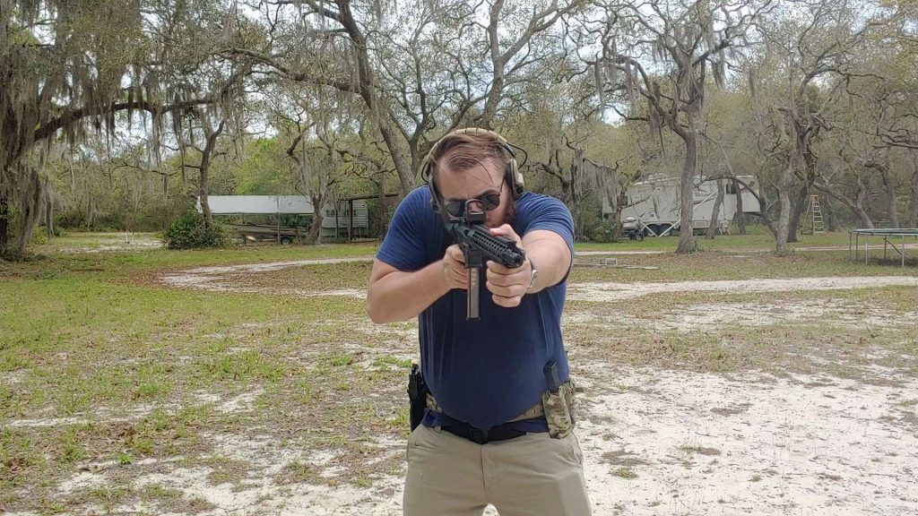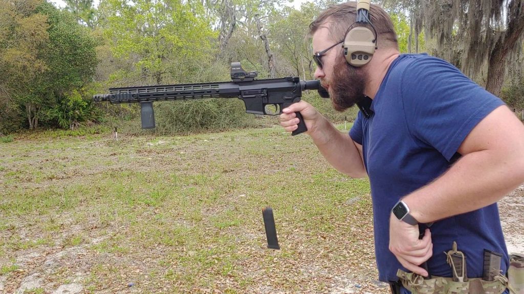 My EPC is topped with a VG6 PCC muzzle device that acts as both a brake and a compensator. This reduces felt recoil and muzzle rise significantly and makes this drill quick. Plus, the third point of contact with my shoulder against the stock makes it too easy. So we have to shorten the time.