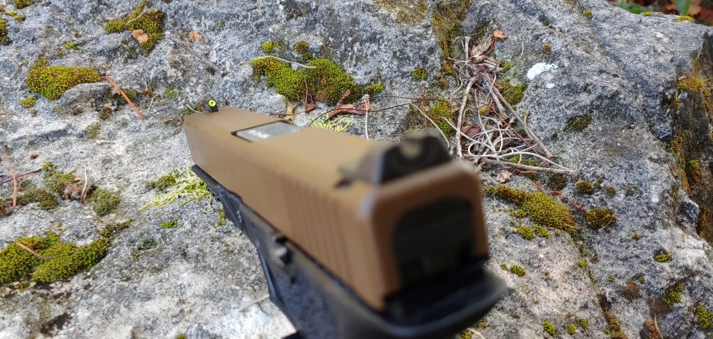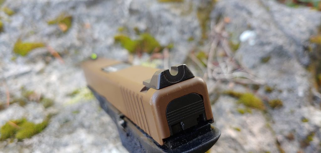 As I mentioned the ergonomics are vastly improved and I prefer this gun over the stock Glock 17. It feels much better in the hand and I feel less recoil and more control over the muzzle. Mine is a full-sized Glock 17 sized handgun. I slapped on a Vickers edition slide that’s FDE with an Ameriglo front sight and Wilson Combat rear.