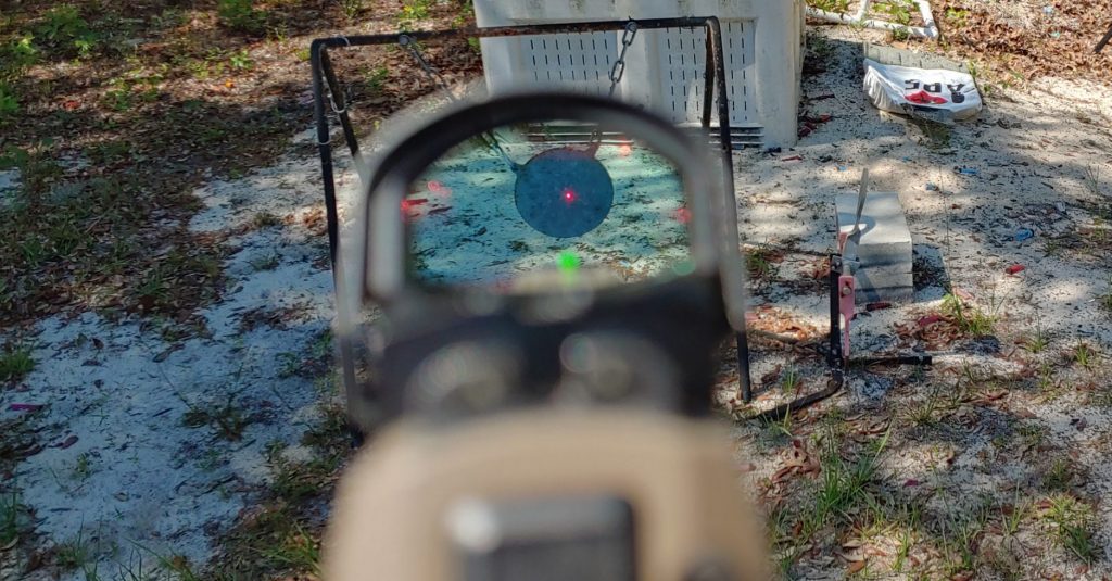 Romeo1Pro dot appears super crisp, and only appears to starburst when the setting gets super high. I see zero stutter when transitioning from target to target as rapidly as I can. The dot doesn’t blur as it moves and stays crisp and clear. A crisp and clear dot allows for precision shooting, and lesser dots appear less like dots and more like stars.